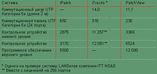 Рекомендованная цена (в долларах США) отдельных компонентов систем интерактивного управления кабельной проводкой.