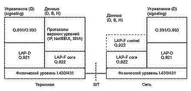 Для автоматического установления виртуальных соединений технология frame relay использует протокол третьего уровня Q.933, а по уже установленным виртуальным каналам данные передаются с помощью протокола Q.922/LAP-F, типичного представителя протоколов второго, канального, уровня (см. Рисунок 1). Такое построение стека протоколов значительно проще по сравнению с архитектурой сетей X.25, так как в последних протокол третьего уровня используется не только для прокладки виртуального пути, но и для передачи по нему пользовательских данных.