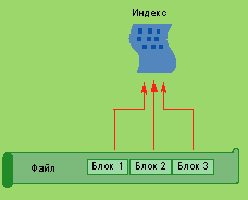 Преимущество архитектуры SAN заключается в отсутствии жесткой привязки составляющих ее систем к каким-либо устройствам хранения данных. Именно это свойство и заложено в основу технологии резервного копирования без участия сервера. В данном случае к дисковому массиву могут иметь прямой доступ как сервер данных, так и устройства, принимающие участие в копировании данных с дисковых массивов. Резервному копированию блоков данных, относящихся к какому-либо файлу, предшествует создание некоего индекса или списка номеров принадлежащих ему блоков (см. Рисунок 4). Это и позволяет в дальнейшем привлечь внешние устройства для резервного копирования. Очевидно, что доступ к блокам файловой системы иного узла, в обход основного сервера данных, чреват опасностью их повреждения. Однако это исключается за счет применения следующих мер.