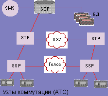 | Рисунок 1. Упрощенное представление сети SS7. |