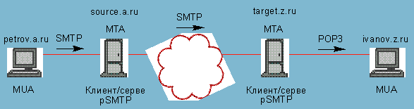 Типичная схема пересылки почтового сообщения.