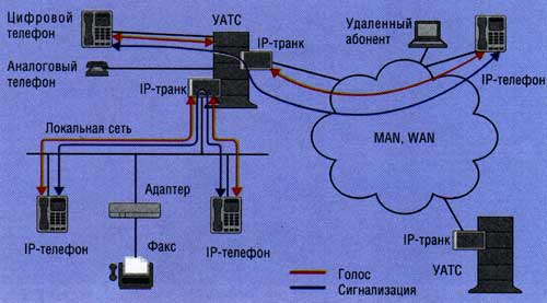 Рисунок 2. УАТС с поддержкой функциональности на базе IP.