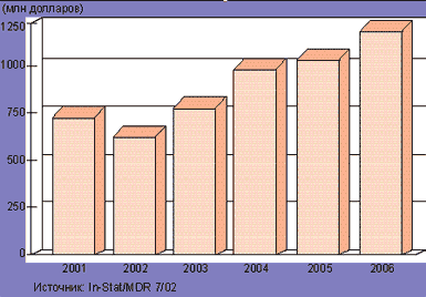 В соответствии с данными In-Stat/ MDR, после прошлогоднего снижения темпов роста (c 54,2 млн портов инсталлированного оборудования в 2000 г. до 36,7 в 2001 г.) рынок DSL снова начал расширяться, особенно в Европе и Азии. Достаточно высокие темпы его развития ожидаются в США (см. Рисунок 1). Эксперты прогнозируют рост этого рынка как минимум до 2006 г. включительно, причем оборот будет увеличиваться в среднем на 11% в год. Процесс станет особенно заметным в 2003-2004 гг., когда резко возрастут объемы поставок оборудования DSL в Европе и Азии и восстановится телекоммуникационное направление экономики США. С 2005 г. рынок DSL перейдет в более зрелую фазу. В его ключевых сегментах будет чувствоваться насыщение, и темпы роста замедлятся. Пока число абонентов асимметричного и симметричного доступа xDSL растет приблизительно одинаковыми темпами, хотя последних примерно вчетверо меньше. Вместе с тем, специалисты прогнозируют значительное увеличение доли технологий VDSL (особенно в Европе), используемой для доставки видео абонентам, и SHDSL, которая в 2006 г. может стать доминирующей разновидностью «симметричной» DSL как средство широкополосного доступа и замены каналов T1/E1. Ведущие производители пытаются удовлетворить спрос на соответствующее абонентское оборудование, выпуская разнообразные устройства с поддержкой различных технологий xDSL.