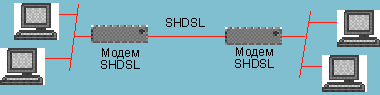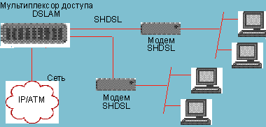 | Рисунок 1. Применение модемов SHDSL в конфигурации с подключением к DSLAM. |