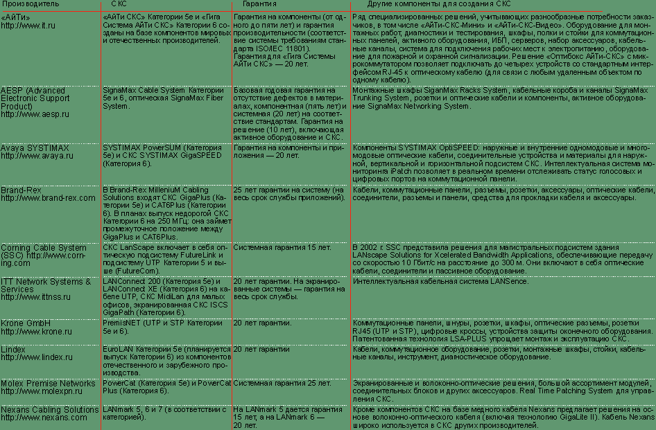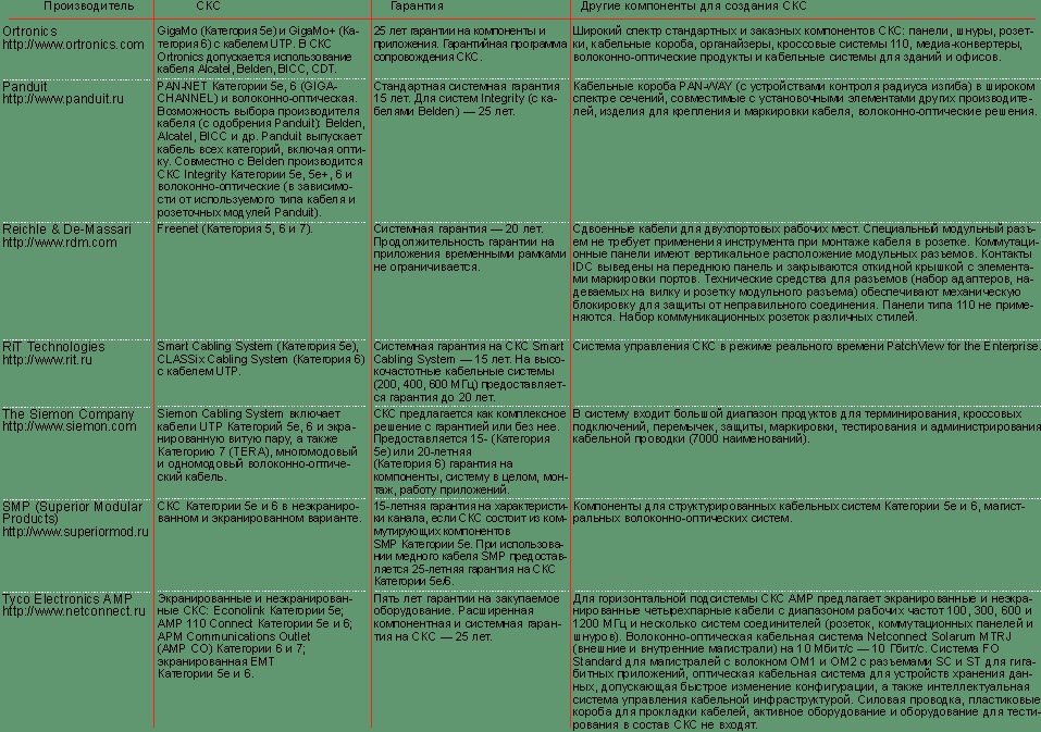 Производители СКС Категорий 5 и 6, представленные на российском рынке