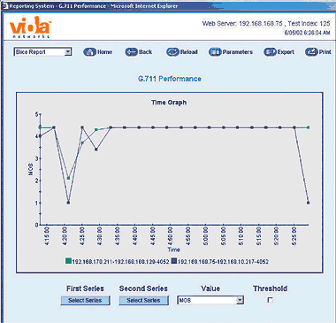 Еще три—пять дней нужны для выполнения пробного развертывания. Чтобы получить реалистическую оценку того, в какой мере пригодна сеть в ее текущем состоянии для поддержки VoIP, производится поэтапное активное наращивание подключенных к оцениваемой линии телефонов и одновременно определяется фактическое качество передачи речи. Каждый добавочный сервис оказывает влияние на работающие приложения, поэтому на этапе пробного развертывания рекомендуется применять активную контрольно-измерительную систему, причем такую, чтобы она могла имитировать не только VoIP, но также, к примеру, доступ к базе данных или в Internet, регистрацию в службе имен Windows Internet Naming Service или передачу файлов. Так, например, при использовании активной системы измерения Netally в качестве виртуальных пользователей выступают распределенные агенты трафика. Они выдают тестовые последовательности, с помощью которых измеряются характеристики как сети, так и приложений (VoIP или запросы к базам данным на языке SQL), с точки зрения пользователя. Наращивая количество параллельно выполняющихся тестов, можно определить не только предел нормальной работоспособности сети, ее компонентов и приложений, но и качество сервиса QoS для каждого уровня нагрузки для любого из приложений и в любой точке системы «локальная-глобальная-локальная сеть». При этом качество сервиса QoS оценивается в так называемых «усредненных мнениях» (Mean Opinion Score, MOS).