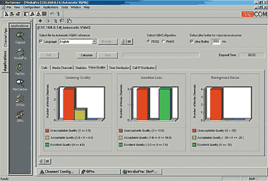 Чтобы выяснить истину, шлюз «берут в клещи». Для этого измерительное оборудование VoIP должно обладать возможностью имитировать и анализировать вызовы из сети IP в телефонную сеть и обратно. В процессе работы с одной стороны шлюза генерируются вызовы, а с другой — производится их оценка в соответствии со стандартами анализа, измерения и оценки качества речи (Perceptual Analysis/Measurement System, PAMS; Perceptual Evaluation of Speech Quality, PESQ). Разница позволяет оценить потери качества при прохождении сигналов через исследуемый компонент сети. Дополнительное измерение задержки дает возможность проверить рабочие характеристики шлюза. Поскольку задержка оказывает непосредственное влияние на качество передачи речи, ее величина должна рассматриваться как важный критерий принятия решений. Проверка функционирования при одном-единственном вызове может дать весьма высокие результаты, но в реальных условиях в сети всегда активно взаимодействуют множество пользователей, поэтому так важно определить предельную емкость сети при помощи имитации множества вызовов.