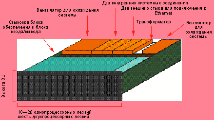 Рисунок 2. «Лезвия» разделены посередине на блок обеспечения и блок ввода/вывода.