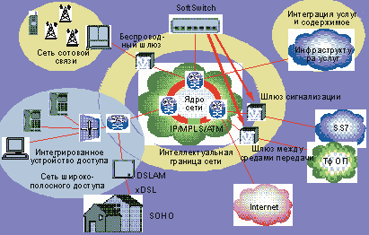 Рисунок 1. Конвергентная мультисервисная сеть полностью на базе IP объединяет на единой платформе все без исключения сети для предоставления специализированных услуг по передаче голоса и данных.