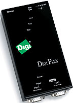 Двухпортовый консольный сервер Digi Flex от Digi International принадлежит к классу серверов устройств с управлением по SNMP и является логическим продолжением линейки Digi One. Сервер имеет один порт Ethernet на 10/100 Мбит/с и два переключаемых последовательных порта RS-232/422/485 формата DB-9, что предоставляет гибкие возможности для подключения асинхронных устройств к сетям TCP/IP. Он предназначен для приложений промышленной автоматизации, интеллектуальных зданий, служб удаленного мониторинга и управления в территориально распределенных сетях. Доступ к последовательным портам периферийных устройств защищается паролем, идентификацией RADIUS и шифрованием SSL.