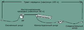 Оконечные и соединительные кабели очень часто различаются только по длине и цвету, но по сравнению с проложенными инсталляционными кабелями обладают, в силу области применения, особыми свойствами, поскольку должны выдерживать многократные операции подключения/отключения, сохраняя при этом гибкость. Они состоят из множества отдельных жил, диаметр которых гораздо меньше диаметра инсталляционных проводников. В связи с более высоким затуханием сигнала при прохождении через провод с меньшим диаметром длина этих кабелей ограничена специальными правилами. Стандартом определяется, что шнур не должен быть длиннее 5 м.