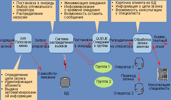 Рисунок 1. Сценарий обработки вызова, применяемый в операторском центре Call-o-Call.