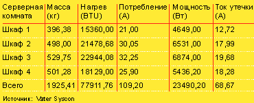 | Таблица 2. Пример расчетов при помощи инструмента Rack Buider компании НР характеристик системы бесперебойного питания для конкретного вычислительного центра. |