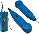 ![]() | Генератор CT-10: малая мощность, непосредственная подача сигнала, «крокодилы» и модульный разъем, две частоты 1 и 8 кГц, прозвонка, питание разговорного тракта, активация порта концентратора (для идентификации розеток). Приемник CT-15: датчик-антенна (металл или пластик), диапазон частот — от 100 Гц до 10 кГц, звуковой и пороговый индикаторы. |
