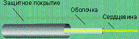 | Рисунок 1. Любой волоконный световод содержит стеклянные сердцевину и оболочку, а также защитное покрытие. |