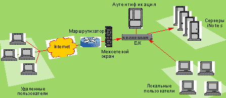 Рисунок 4. Устройство E/X компании Redline в корпоративной среде с приложением iNotes.