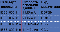 | Таблица 1. Скорость передачи данных в стандарте 802.11b. |