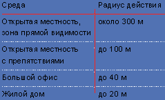 | Таблица 4. Средний радиус действия стандартных точек доступа 802.11b. |