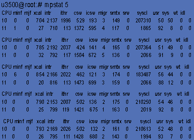 В других системах UNIX, берущих свое начало от AT&T System V, для отображения статистики служат аналогичные команды. Так, в HP-UX 11i v1 — это vmstat, mpstat, iostat, netstat, причем они отображают практически ту же информацию, что и команды ОС Solaris. Однако методика анализа их результатов для ОС Solaris и для HP-UX различна в связи с отличиями во внутренних структурах указанных ОС.