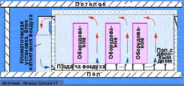 | Рисунок 1. Схематическое изображение конструкции системы кондиционирования вычислительного центра с учетом требований эксплуатации компьютерной техники. |