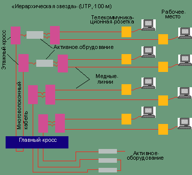 В системах FTTD используется схема «иерархическая звезда» с ограничением на длину канала в 300 м (в зависимости от типа волокна и числа соединений значительная часть оптических СКС поддерживает и большие расстояния), причем иерархия может быть как традиционной, с этажными распределителями, так и централизованной (см. Рисунок 2). Централизованная архитектура FTTD с многомодовым волокном позволяет сократить издержки и не требует установки дополнительного оборудования в промежуточных точках. Каждый пользователь фактически получает собственную магистраль к коммутатору или серверу. Такая схема упрощает внесение изменений в кабельную систему и сводит к минимуму число гигабитных портов в телекоммуникационном оборудовании. В результате «оптика до рабочего места» может оказаться дешевле не только экранированной кабельной системы, но и UTP.
