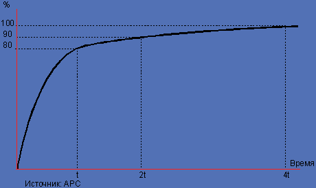 Рисунок 6. Зависимость емкости батареи от времени заряда.