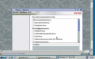 Исключительно позитивно следует оценить внесенные изменения в области инсталляции и администрирования. Процесс инсталляции NetWare 6.5, по сравнению с предыдущими версиями, заметно упростился. Так, теперь разделы DOS можно создавать без перезагрузки системы, а на запрос перед началом инсталляции после определенного времени ожидания будут введены стандартные величины — как правило, это обеспечивает автоматическое распознавание соответствующих системных компонентов. Кроме того, положительным моментом при инсталляции является возможность выбора сконфигурированных заранее вариантов сервера (см. Рисунок 3) — сервер «виртуального офиса» или сервер с Apache, MySQL, Perl и PHP. Жаль только, что работать можно лишь с одним из перечисленных вариантов. Если бы их удавалось комбинировать, инсталляция была бы еще проще.
