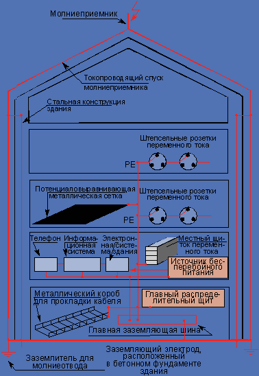 Сопротивление заземляющего устройства должно соответствовать ПУЭ (см. раздел 1.7). Если оно имеет допустимое значение в здании, уменьшение сопротивления не влияет на устойчивость функционирования оборудования, и дополнительные требования к сопротивлению заземлителей не предъявляются.