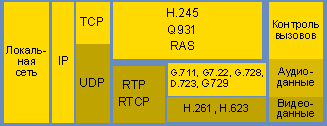 | Рисунок 1. Место различных стандартов и протоколов в функциональной структуре VoIP. |