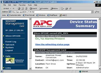 Для облегчения процедуры интеграции ИБП выпускаются специальные устройства — карты Web/SNMP. Они позволяют оперативному персоналу СБЭ и специалистам служб информационных систем получать данные о работе ИБП, в частности, с помощью мобильного телефона, благодаря чему обеспечивается гибкость в управлении ИБП, так необходимая для поддержания высокой эксплуатационной надежности.