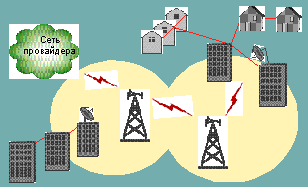 | Риcунок 1. Домовая сеть с подключением к провайдеру посредством оборудования RadioEthernet. |