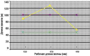 Результаты расчетов при типичных для оптическо-электронной элементной базы видимого диапазона длин волн Е = 12 дБ и при условии применения высококачественных разюемов с потерями А = 1,5 дБ приведены на Рисунке 4.