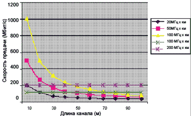 - В случае уменьшения длины тракта передачи до 50 и 25 м скорость передачи информации возрастает до 200 и 400 Мбит/с, соответственно, что позволяет применять оборудование IEEE 1394b, адекватное спецификациям S200 и S400. В данной ситуации в области домашних сетей полимерное волокно может рассматриваться как дополнение кабелей из витых пар Категории 8, обсуждаемых сейчас в комитетах по стандартизации.