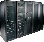 Ряд производителей ИБП предлагают для решения перечисленного комплекса задач интегрированный продукт. Основу его составляет телекоммуникационный монтажный шкаф стандартного форм-фактора 19? (стандарт EIA-310-D). В концепции интегрированного продукта шкаф является базовым строительным модулем, где размещаются элементы инфраструктуры и основное инфокоммуникационное оборудование. Шкафы могут подбираться для конкретного оборудования и иметь различную ширину (от 600 до 800 мм), глубину (от 600 до 1000 мм) и высоту (до 45U). Естественно, производители предлагают комплект дополнительного оборудования, присущий большинству подобных конструктивов, — кабельные органайзеры, полки, комплекты заземления и т. д.