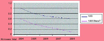 Сравнение стоимости использования оптического волокна и витой пары для 10 Gigabit Ethernet.