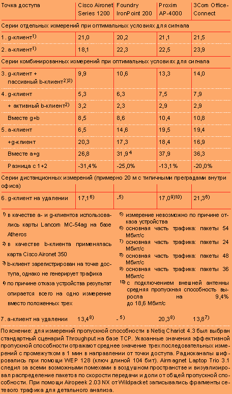 Результаты измерений с Netiq Chariot 4.3 (средняя пропускная способность в Мбит/с).