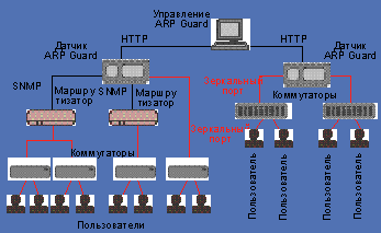 | Рисунок 2. Датчики системы ARP Guard распознают смену отношений IP-MAC. |