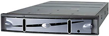 Система хранения EMC AX100 высотой 2U рассчитана на установку в стойку и вмещает до 12 дисков SATA емкостью 160 и 250 Гбайт, причем допускается смешанное использование дисков разной вместимости. Конфигурация системы начального уровня предполагает использование трех дисков SATA по 160 Гбайт. В зависимости от количества установленных дисков объем сохраняемых данных может достигать 3 Тбайт. Производительность системы составляет 30 тыс. операций в секунду.