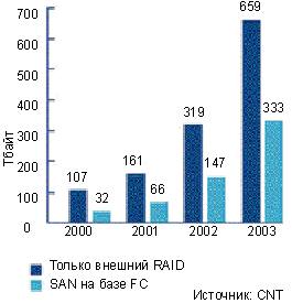 | Рисунок 2. Емкость подключаемых через Fibre Channel накопителей постоянно растет. |