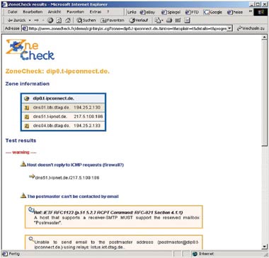 | Рисунок 1. Взгляд со стороны: на Zonecheck.fr можно получить анализ собственной конфигурации сервера DNS. |