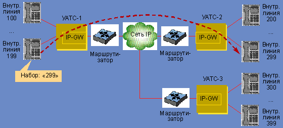 Реализации распределенной офисной телефонной сети с помощью УАТС со встроенными шлюзами IP.
