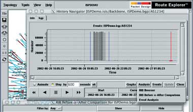 Поскольку записанные данные сохраняются, администратор может просмотреть изменения в сети (анализ истории). Если, к примеру, после обновления программного обеспечения возникли проблемы с маршрутизацией, то администратор воспроизведет всю историю «облака маршрутизации» и исследует ее различные аспекты.