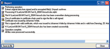 Насколько умеренным представляется функциональный охват продукта, настолько же продуманной оказывается работа с ним, вплоть до деталей. К примеру, можно предписать, чтобы незашифрованные файлы немедленно удалялись. Такие функции, расширяющие возможности адаптации системы к различным пользователям, повышают вероятность ее принятия ими. Положительное впечатление оставляет и то, что продукт указывает на возможные проблемы с безопасностью вследствие действий пользователя — так, система постоянно выдает предупреждение, когда он использует самостоятельно подписанный сертификат для критичных операций (см. Рисунок 1 и 2). Опытные пользователи могут выбирать между различными алгоритмами — RSA, DES и AES — и устанавливать длину ключа от 512 до 4096 бит. Полезной дополнительной функцией продукта является инструмент для надежного удаления файлов путем троекратного переписывания. Одна лицензия стоит 29,95 долларов, при покупке пяти лицензий и более цена падает до 19,95 долларов.