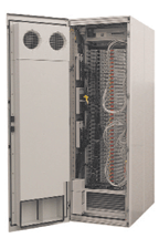 Принцип отвода теплоты в подобных установках основан не на подаче холодного воздуха, отбираемого от системы общего кондиционирования, а на прокачке воды, поступающей от системы водоснабжения здания и охлажденной до температуры 6—120С. Охлаждающий воздух циркулирует внутри шкафа по замкнутой схеме. Для повышения эффективности он принудительно подается на серверы, отбирается на выходе системой охлаждения, по воздуховоду поступает в теплообменник и после охлаждения используется снова. При отводе выделяемой мощности до 1 МВт в системе охлаждения необходимо применять трубу с внутренним диаметром 125 мм.