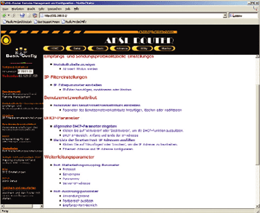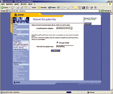 Больший интерес вызывает маршрутизатор DSL/Powerline. Наряду с интерфейсами глобальной сети и DSL он оснащен тремя портами локальной сети для «нормального» подключения компонентов Ethernet. При входе в систему оказалось, что интерфейс конфигурации работает на удивление медленно. Кроме того, загрузка некоторых страниц настолько перегружала маршрутизатор, что во время этого процесса никакой другой трафик в глобальную сеть доступа не имел. После завершения конфигурации маршрутизатор вел себя нормально.