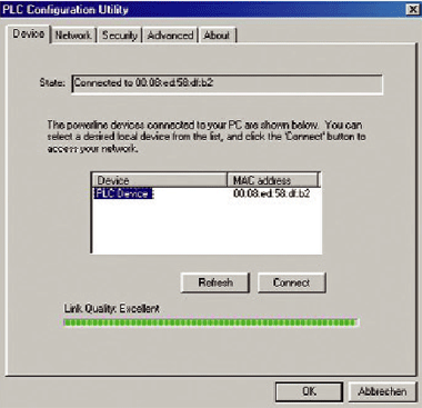 Следует подчеркнуть, что совместная работа компонентов и решений от различных производителей не вызвала никаких проблем. Еще год назад об этом можно было только мечтать — сказывается положительное воздействие разработанного Homeplug Powerline Alliance квазистандарта для продуктов Powerline. Неудивительно, что все устройства обладают практически идентичными рабочими характеристиками: они передают информацию с максимальной скоростью 14 Мбит/с на расстояние до 200 м, а для защиты соединений используют 56-разрядное шифрование DES. Передача данных выполняется на разных несущих частотах — этого вполне достаточно для обеспечения необходимого уровня безопасности.