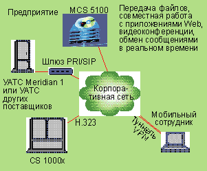 | Рисунок 3. Корпоративные мультимедиа-коммуникации на основе Nortel MCS 5100. |