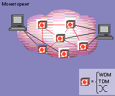 OVPN базируются на так называемых интеллектуальных оптических сетях. Речь идет о пока еще молодой сетевой архитектуре на базе современных технологий коммутации. От традиционной оптической сети ее отличает интеграция важных составных частей современных сетей: спектрального уплотнения (Wavelength Division Multiplexing, WDM), мультиплексной передачи с временным уплотнением каналов (Time Division Multiplexing, TDM) и кросс-коммутации (Cross Connect). В комбинации с отлаженным сетевым управлением интеллектуальные оптические сети предлагают новые возможности проектирования сети при полной прозрачности для протоколов, т. е. используемый протокол роли не играет (см. Рисунок 1).