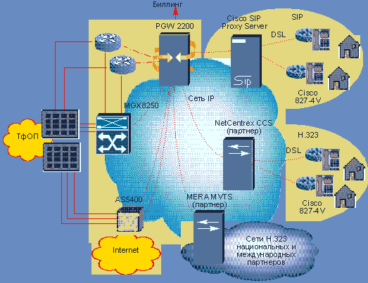 Cisco PGW 2200 используется для предоставления голосовых услуг абонентам широкополосного доступа DSL, терминации трафика VoIP (H.323), коммутируемого доступа в Internet. В сетях партнеров для терминации трафика H.323 и обслуживания абонентов широкополосного доступа по H.323 применяются программные коммутаторы MVTS и NetCentrex.