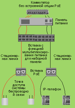 Очень многие конечные устройства в локальной сети отличаются невысокой потребляемой мощностью. С учетом этого обстоятельства международный комитет IEEE 802.3 по стандартизации оборудования Ethernet пришел к идее поддержки питания оборудования данной разновидности непосредственно по кабельным трактам. Реализация данной концепции устраняет необходимость в установке отдельной розетки электропитания для каждого такого устройства и, кроме того, обеспечивает подачу напряжения на сетевое информационное оборудование отдельно от устройств других типов, что в некоторых организациях является обязательным требованием в политике обеспечения бесперебойным питанием.
